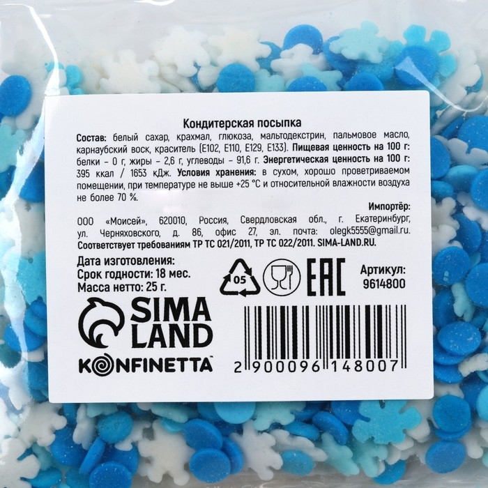 Кондитерская посыпка сахарная: голубая, белая, 25 г.