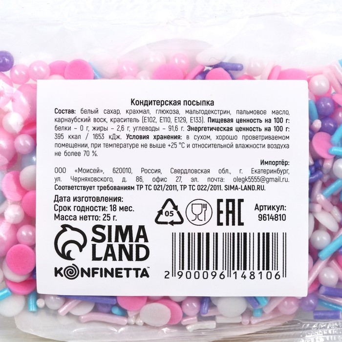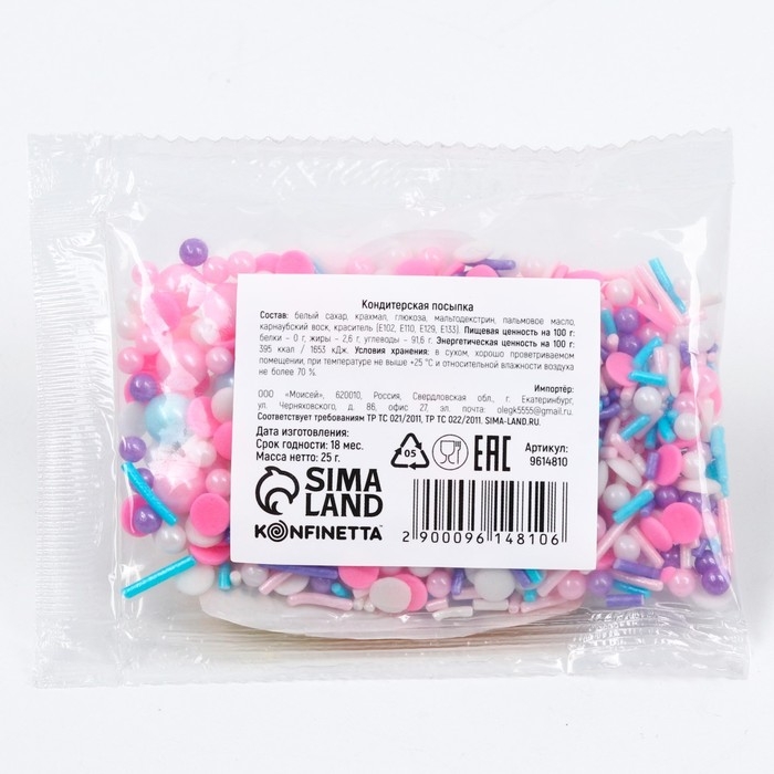 Кондитерская посыпка сахарная: розовая, белая, голубая, 25 г.