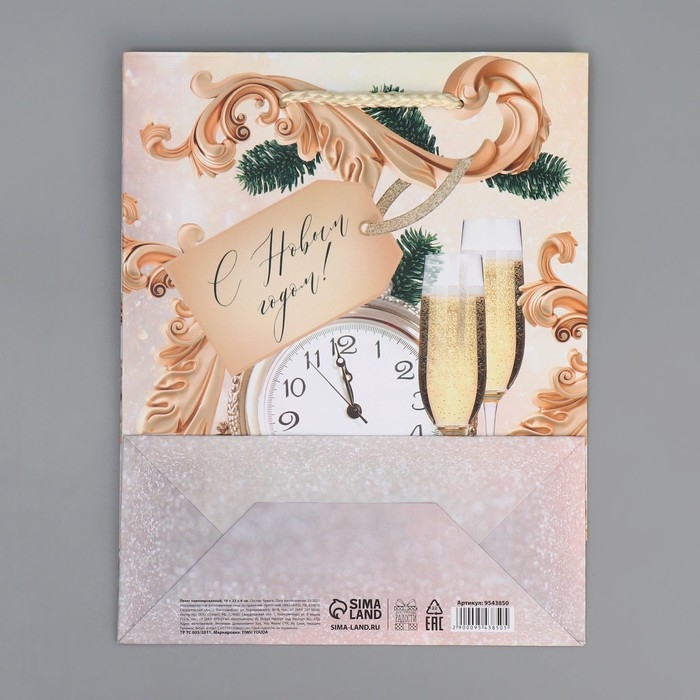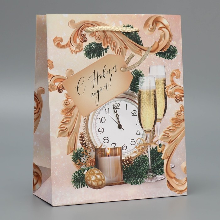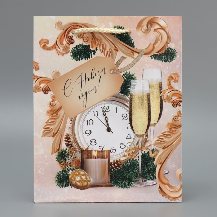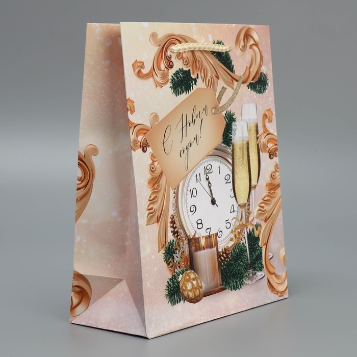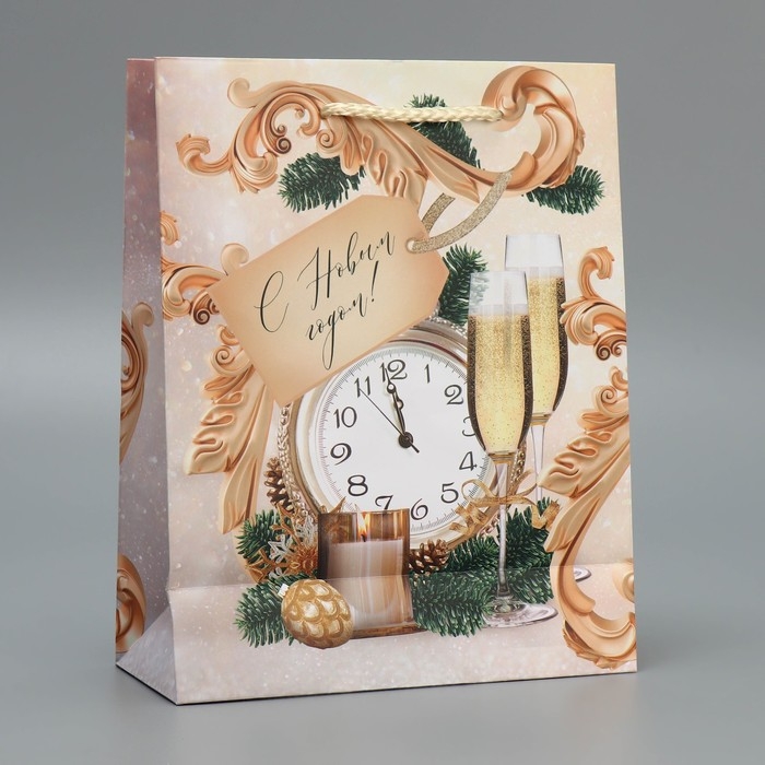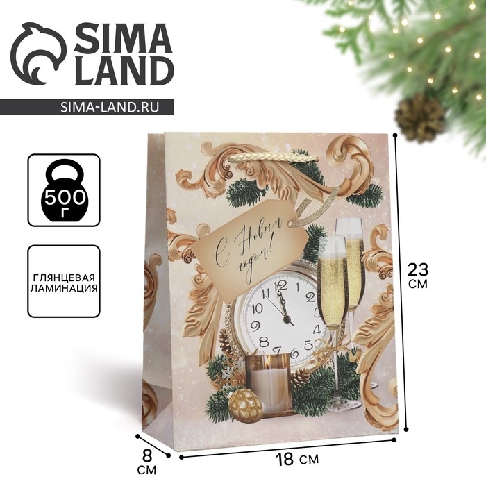 Пакет подарочный новогодний ламинированный «Новогоднее время», MS 18 х 23 х 8 см, Новый год