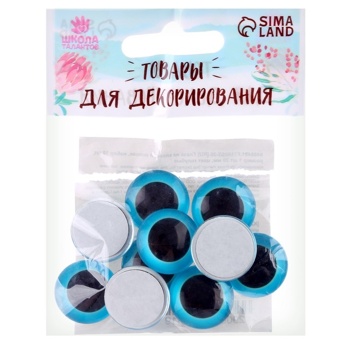 Глаза на клеевой основе, набор 10 шт., размер 1 шт. — 20 мм, цвет голубой