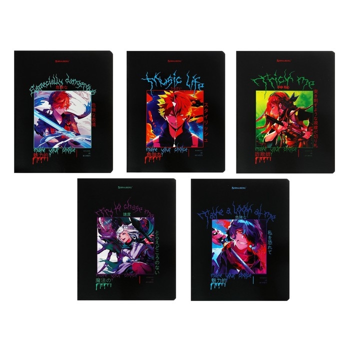 Тетрадь 48л кл BRAUBERG Anime, гл. лак, ассорти, 5 видов