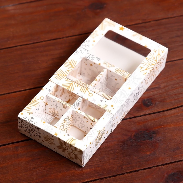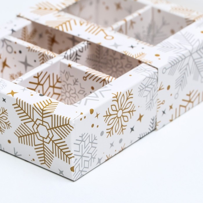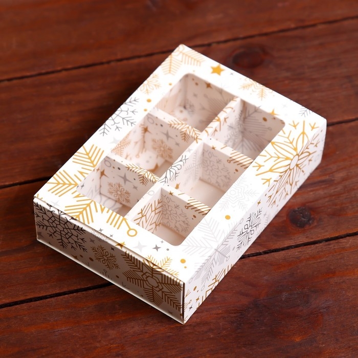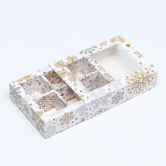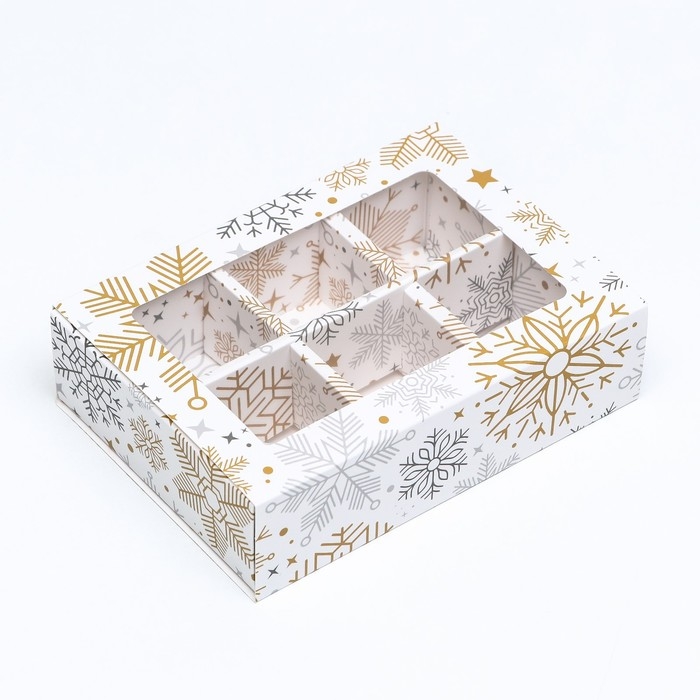 Новый год. Коробка под 6 конфет "Снежинки", 13,7 х 9,8 х 3,8 см, кондитерская упаковка