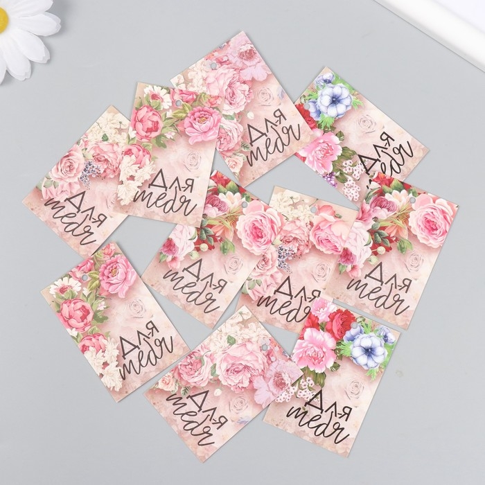 Бирка картон "Цветы для тебя" набор 10 шт (5 видов) 4х6 см