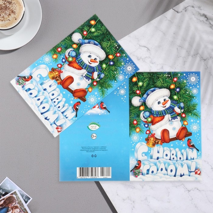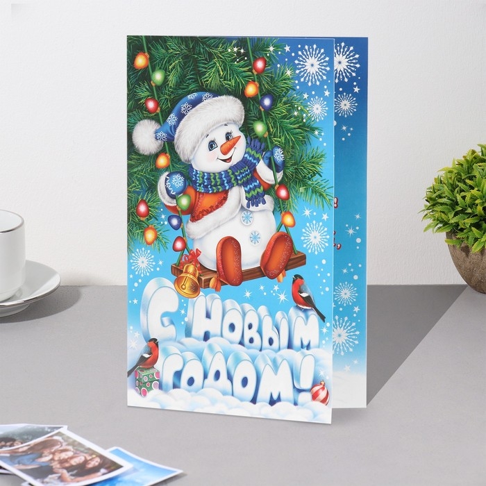 Открытка "С Новым Годом!" глиттер, конгрев, снеговик, 12,5х19,5 см