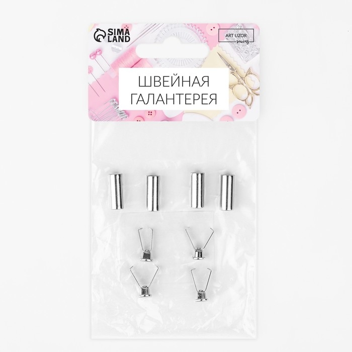 Наконечник для шнура цилиндр, d = 6 × 15 мм, 4 шт, цвет серебряный