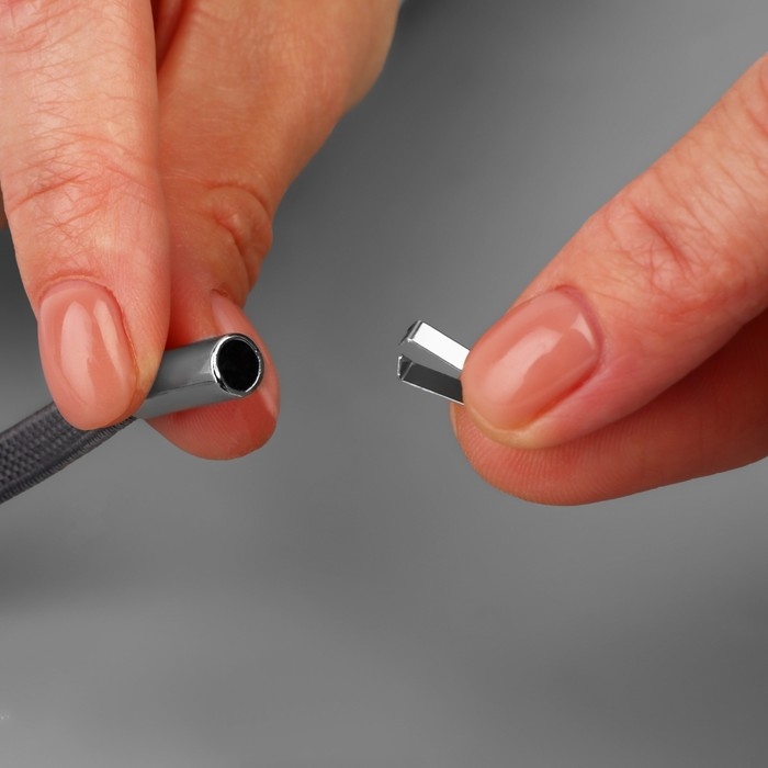 Для установки наденьте наконечник на шнур, затем зафиксируйте шляпку на шнуре при помощи зажимов и вставьте её в наконечник. Подходит для круглых и плоских шнуров.