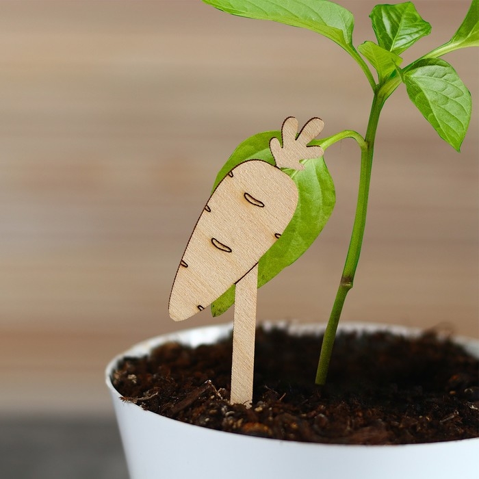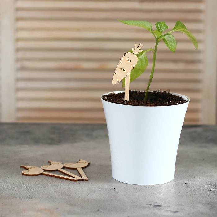 Таблички садовые для маркировки, 12 см, набор 8 шт., дерево, «Морковь», Greengo