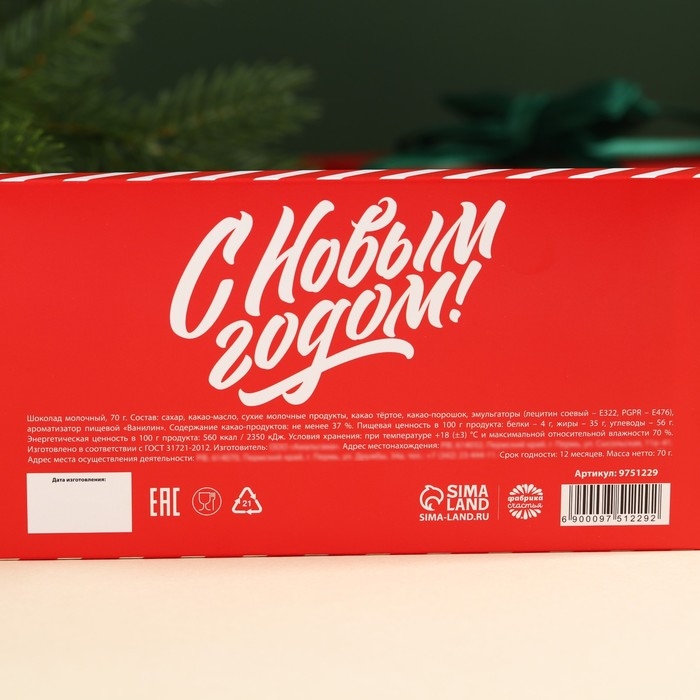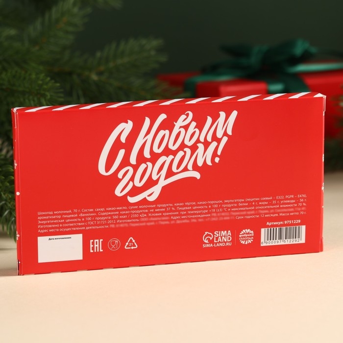 Молочный шоколад «От Деда Мороза» в открытке с кармашком для денег, 70 г.