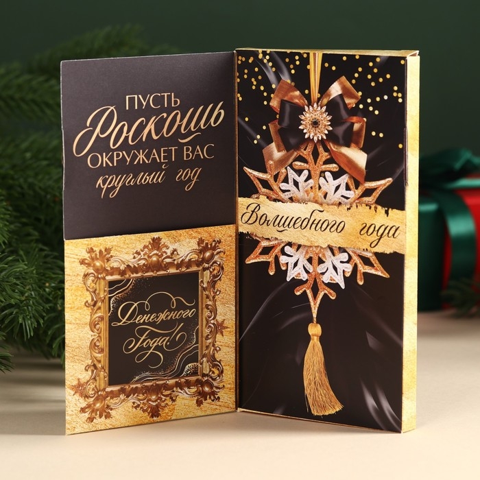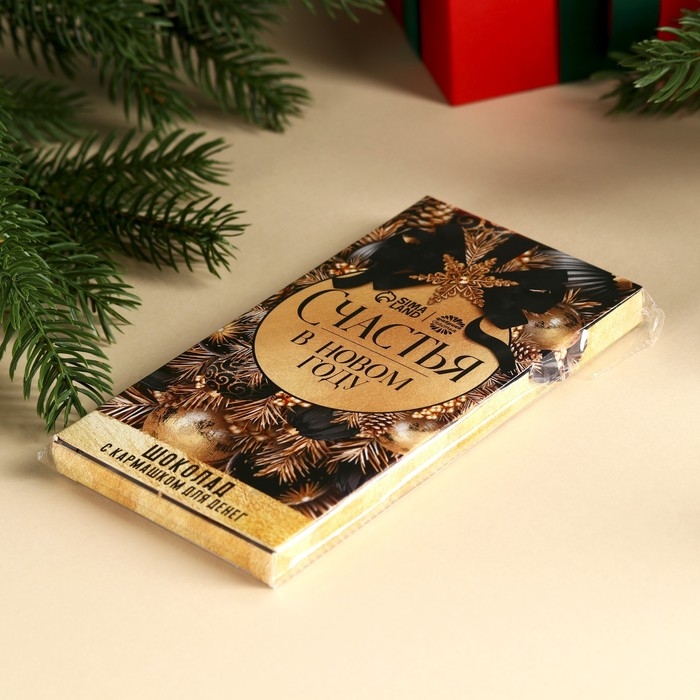 Молочный шоколад «Счастья в новом году» в открытке с кармашком для денег, 70 г.