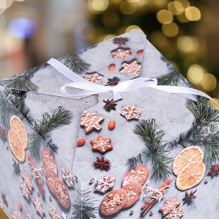 Новый год. Коробка складная, подарочная новогодняя "Печенье" 14 х 14 х 14 см.