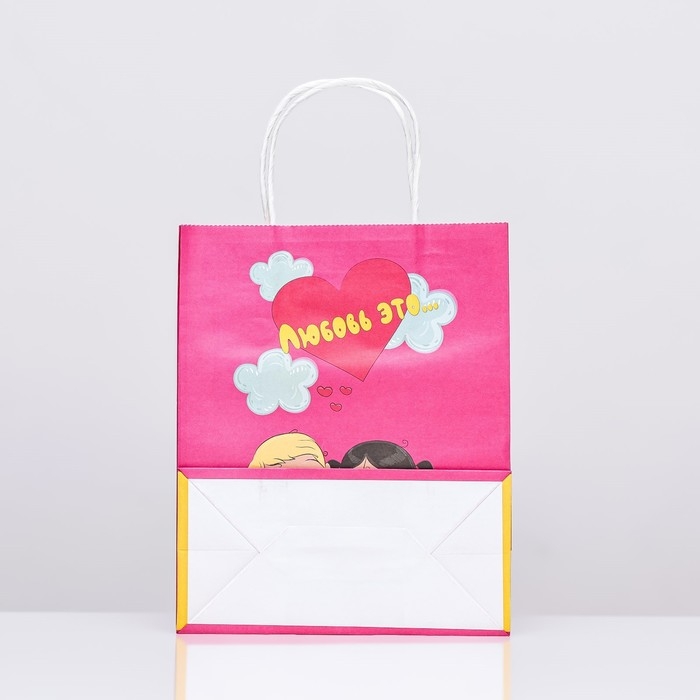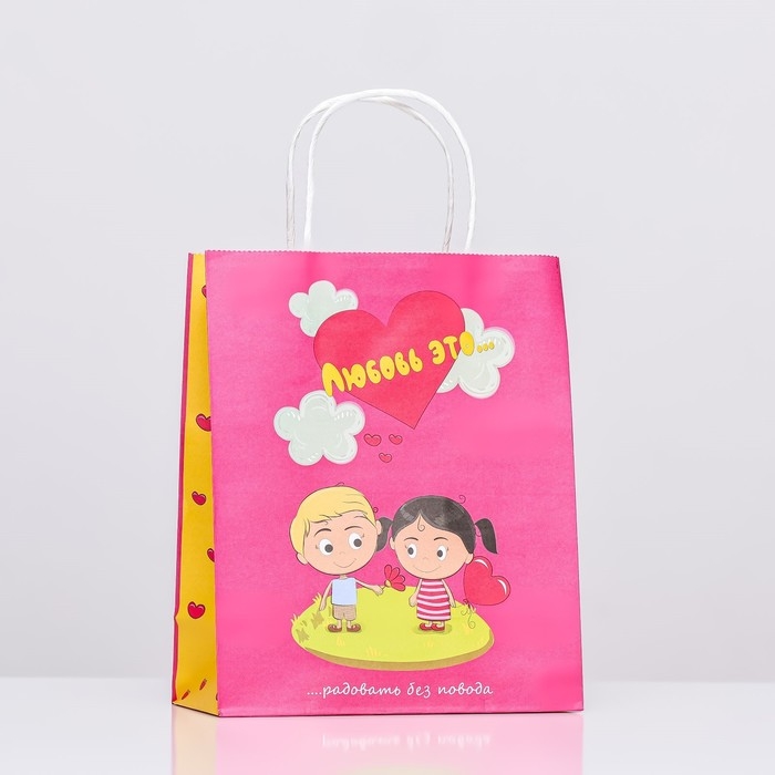 Пакет крафт "Любовь это...", розовый, 22 х 11 х 27 см, 120 г/м2