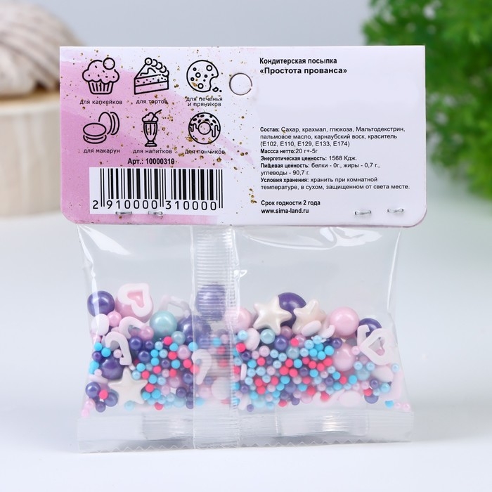 Кондитерская посыпка "Простота прованса" - это незаменимое украшение для Вашего праздничного стола. Даже самый простой в исполнении десерт заиграет яркими красками благодаря нашей кондитерской посыпке.