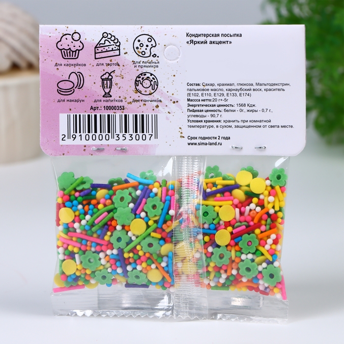 Кондитерская посыпка "Яркий акцент" - это незаменимое украшение для Вашего праздничного стола. Даже самый простой в исполнении десерт заиграет яркими красками благодаря нашей кондитерской посыпке.