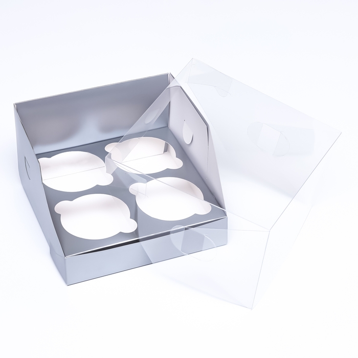 Коробка для 4 капкейков 16 х 16 х 10 , Серебро