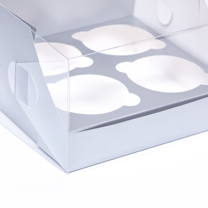 Коробка на 6 капкейков с окном, белая, 25 х 17 х 10 см