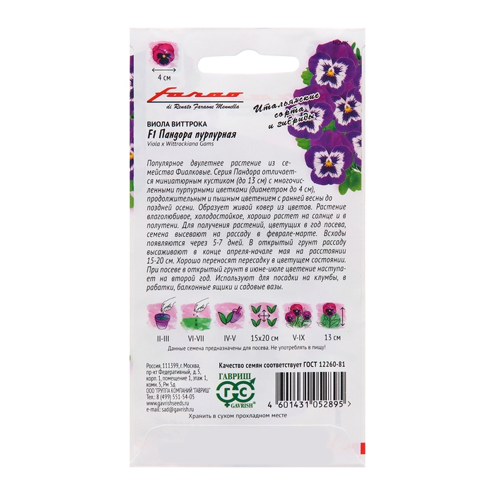 Семена Виола "Пандора пурпурная", F1,5 шт.