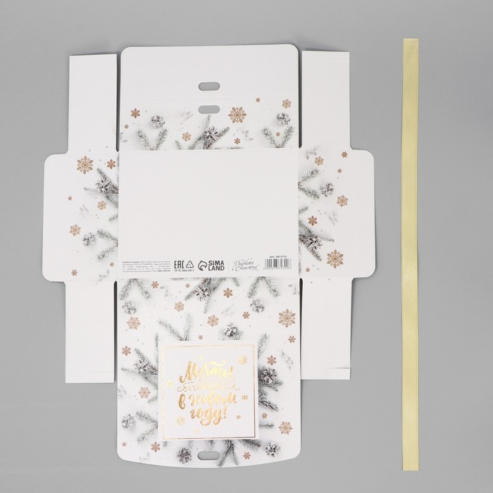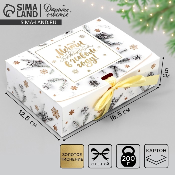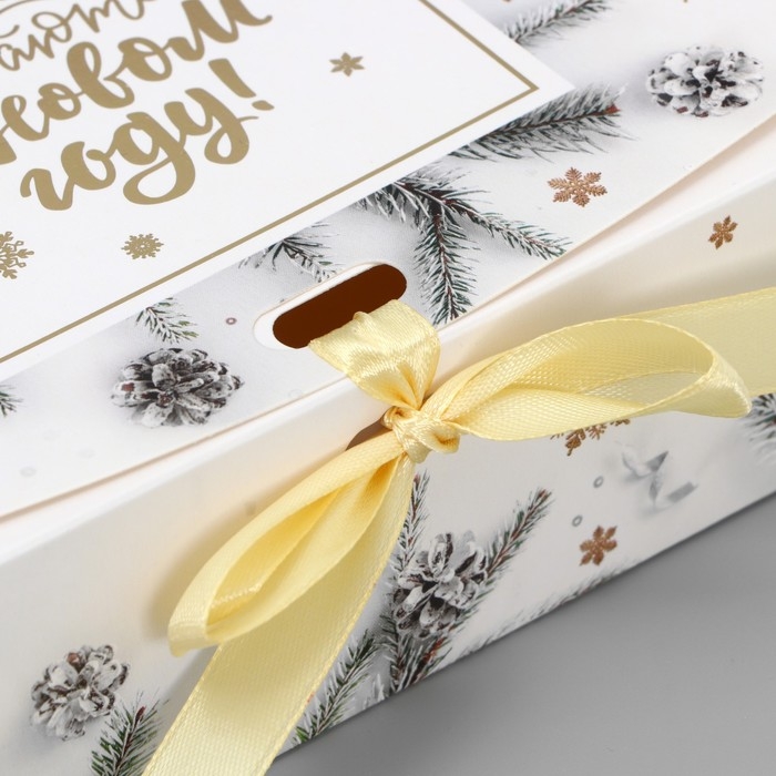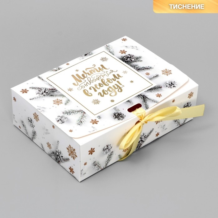 Коробка подарочная новогодняя складная «Новогодние веточки», тиснение, 16.5 х 12.5 х 5 см, Новый год