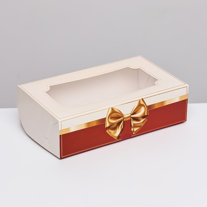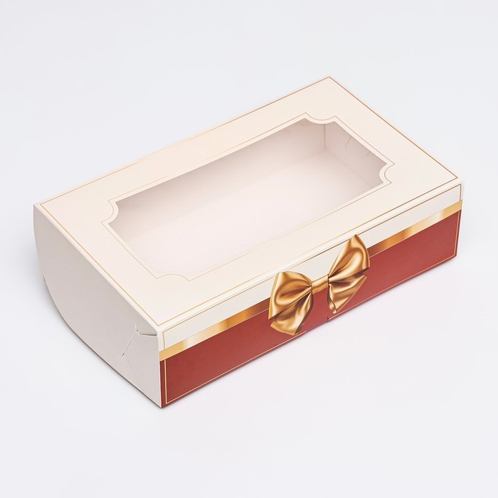 Коробка складная с окном под зефир "Золотой бант", 25 х 15 х 7 см