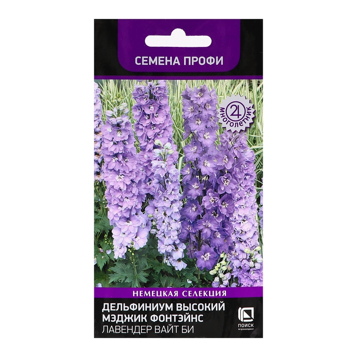 Семена цветов Дельфиниум высокий "Мэджик Фонтэйнс Лавендер Вайт Би", 10шт