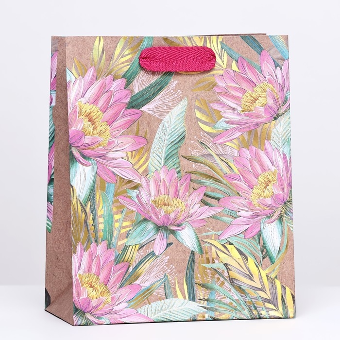 Пакет крафт "Хризантемы" 18 х 22,3 х 10 см