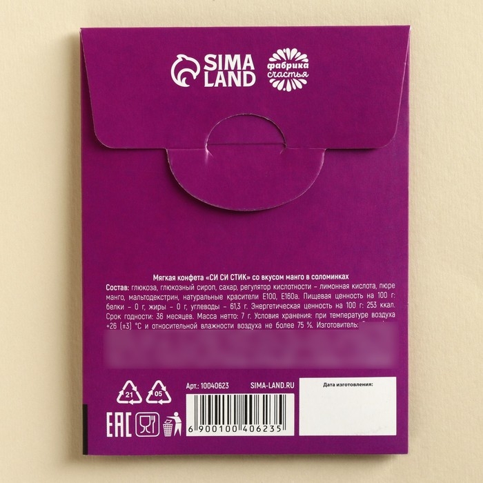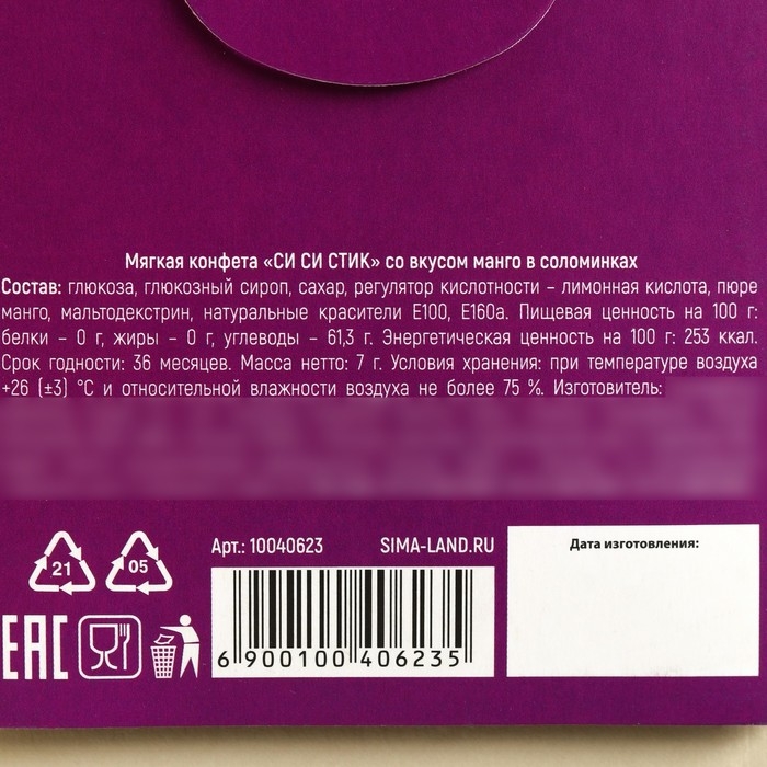 Состав: глюкоза, крахмальная патока, сахар, регулятор кислотности - лимонная кислота, ароматизатор "Ваниль"; натуральные красители Е100, Е160а.