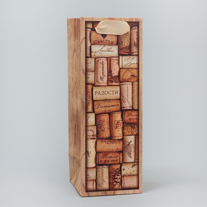 Пакет подарочный под бутылку, упаковка, «Радости», 9 х 25 х 8.9 см