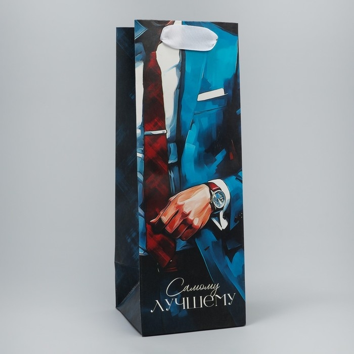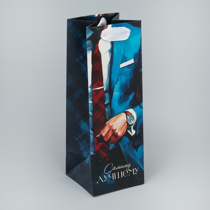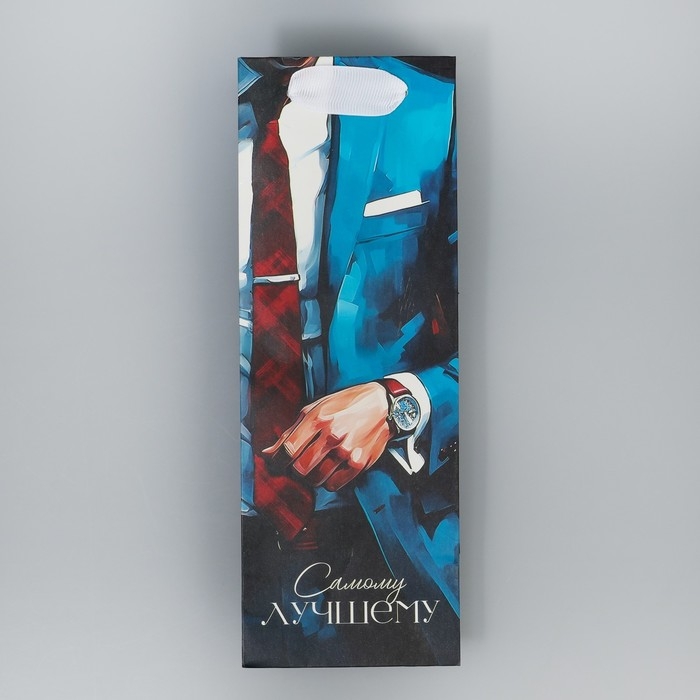 Пакет подарочный под бутылку, упаковка, «Лучшему», 9 х 25 х 8.9 см