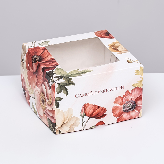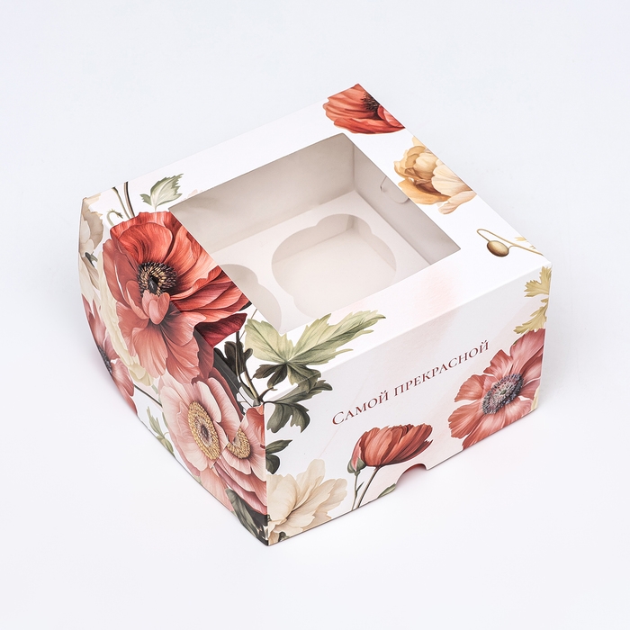 Коробка для 4 капкейков с окном , "Самой прекрасной", 16 х 16 х 10 см