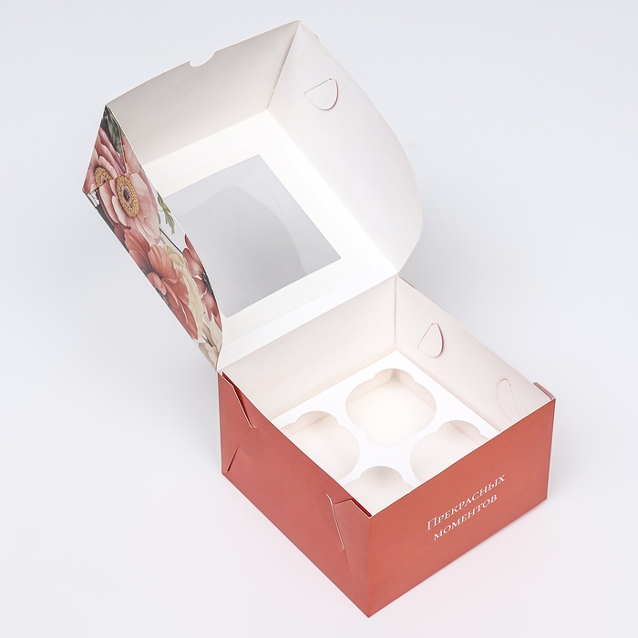- Рассчитана на 4 капкейка - коробка оснащена специальными отделениями под каждый капкейк;