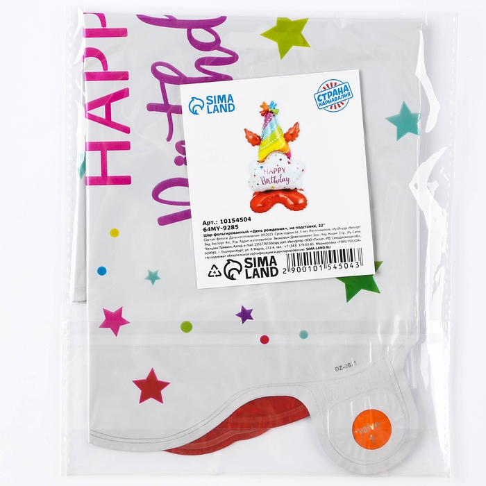 Шар фольгированный 22" «День Рождение», на подставке, под воздух