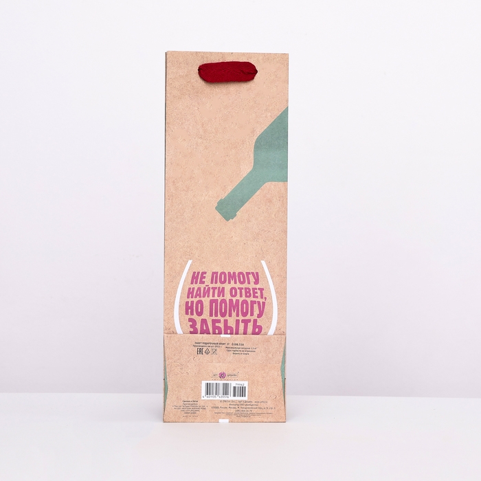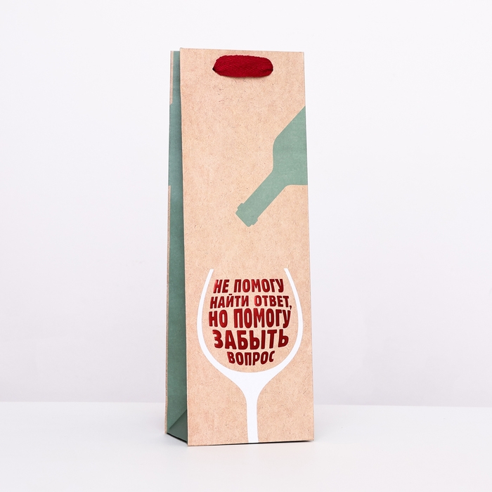 Пакет крафт под бутылку "Помогу забыть вопрос" 12 х 36 х 8,5 см