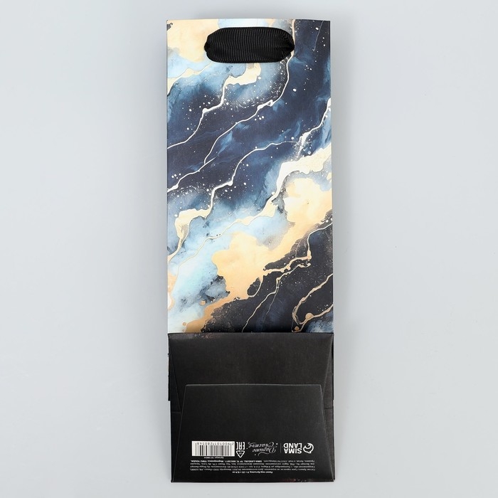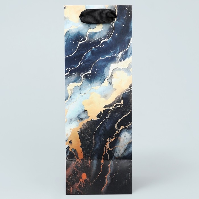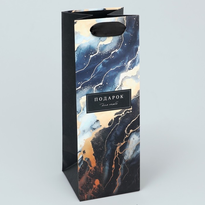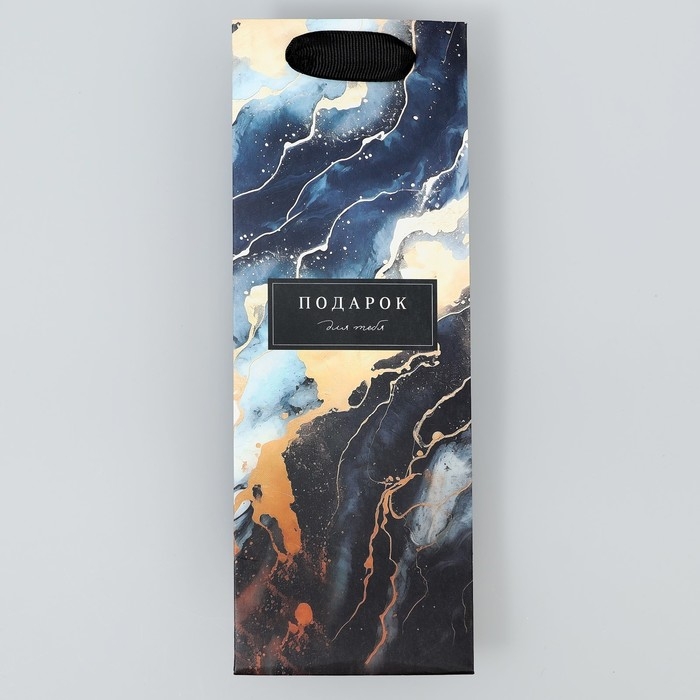 Пакет подарочный под бутылку, упаковка, «Мрамор», 9 х 25 х 8.9 см