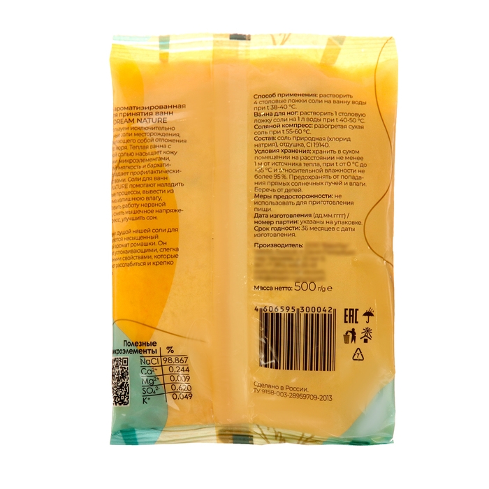 Морская соль для ванны с пеной от бренда DREAM NATURE - это не просто средство для ухода за кожей, но и возможность погрузиться в атмосферу морского побережья, расслабиться и насладиться приятным ароматом ромашки.