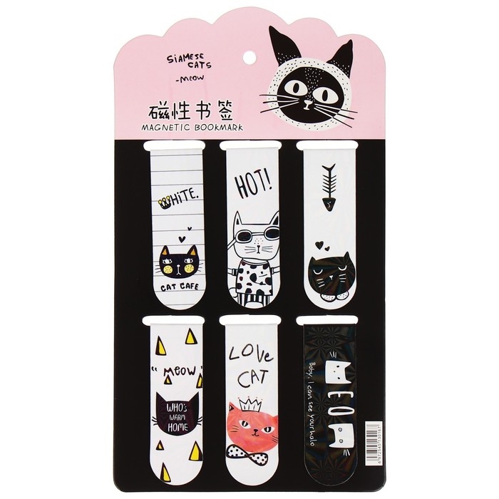 Набор магнитных закладок для книг Calligrata 6 штук, "Кошки", МИКС