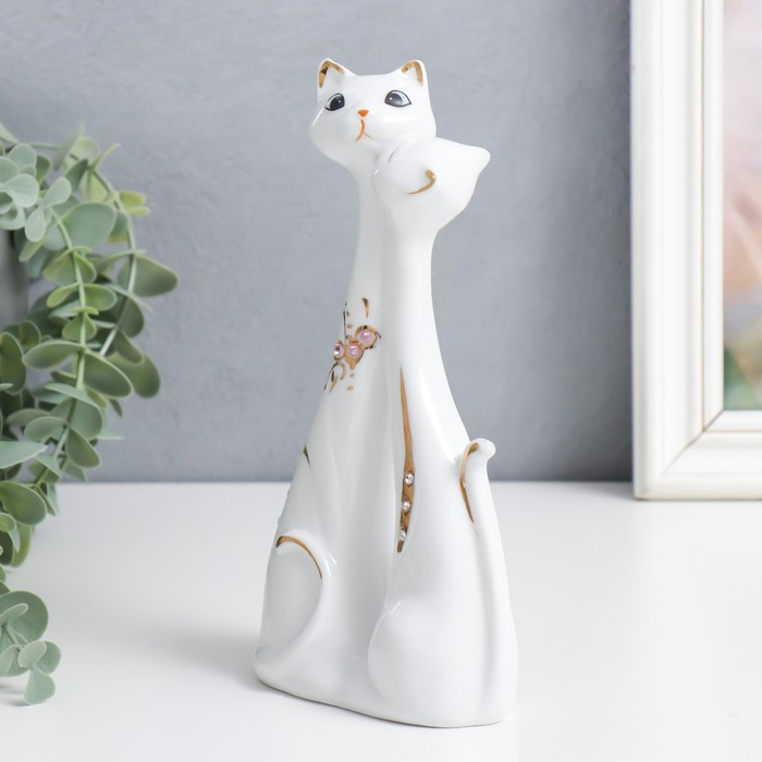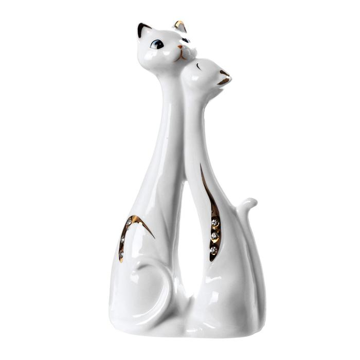 Сувенир керамика под фарфор "2 киски любовь" 20х10х5,5 см, стразы