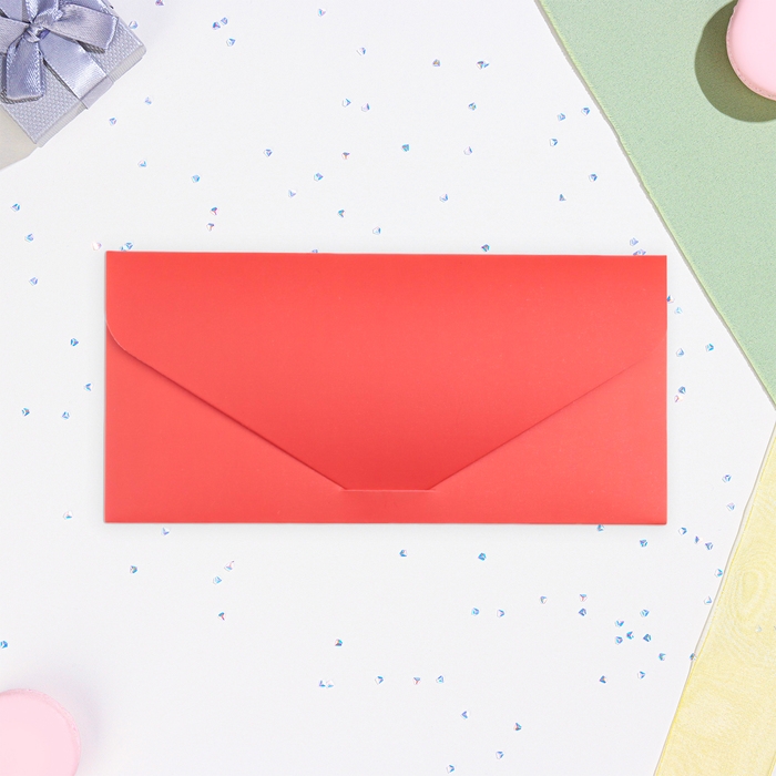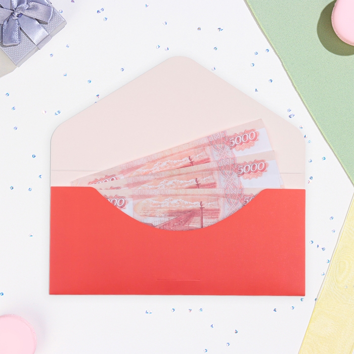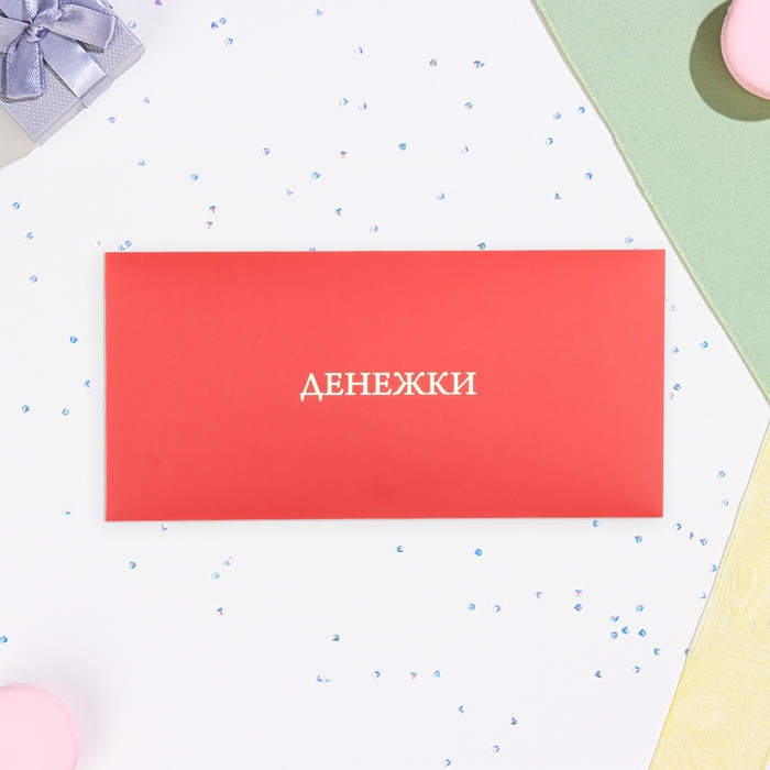 Конверт для денег "Денежки" золото на красном, тиснение, 16,5 х 8 см