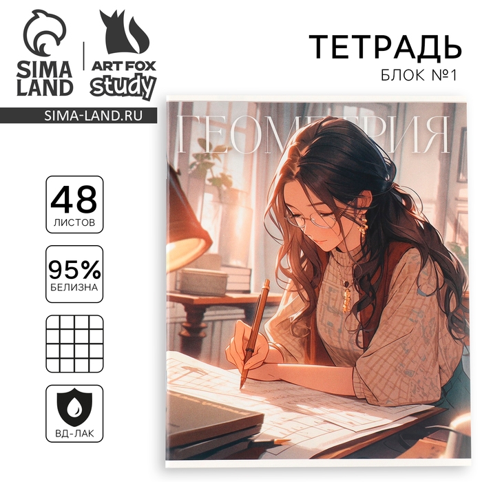Тетрадь предметная А5, 48 л на скрепке «1 сентября: Аниме.Геометрия» ВД лак