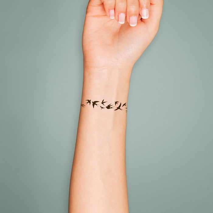 Татуировка на тело чёрная "Браслет. Ласточки" 20х3 см