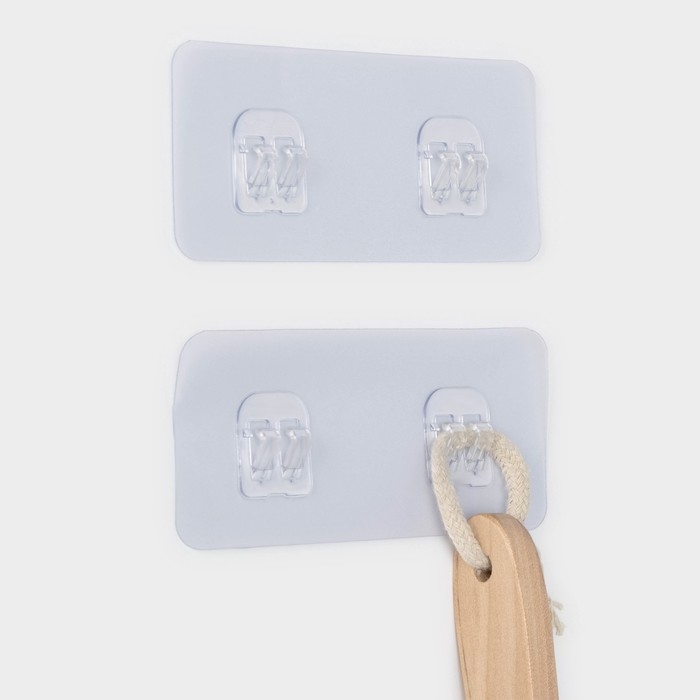 Крючок самоклеящийся, 2 шт, двойной, для прутьев, прозрачная основа, 14х6 см