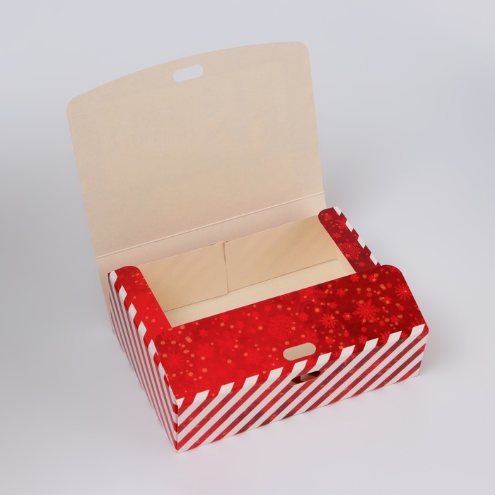 - Коробка выполнена в ярких новогодних цветах, что придает ей праздничный вид.