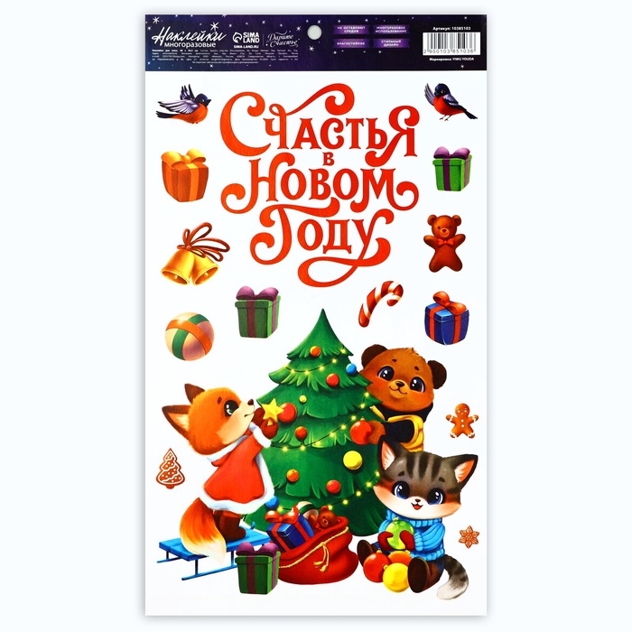 Виниловые наклейки на окна «Счастья в Новом году», многоразовые, 20 х 34.5 см, Новый год