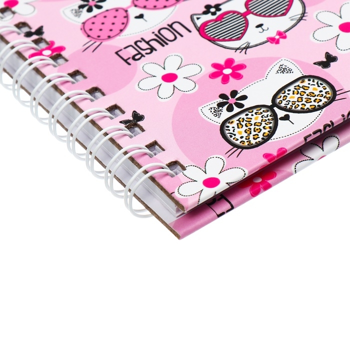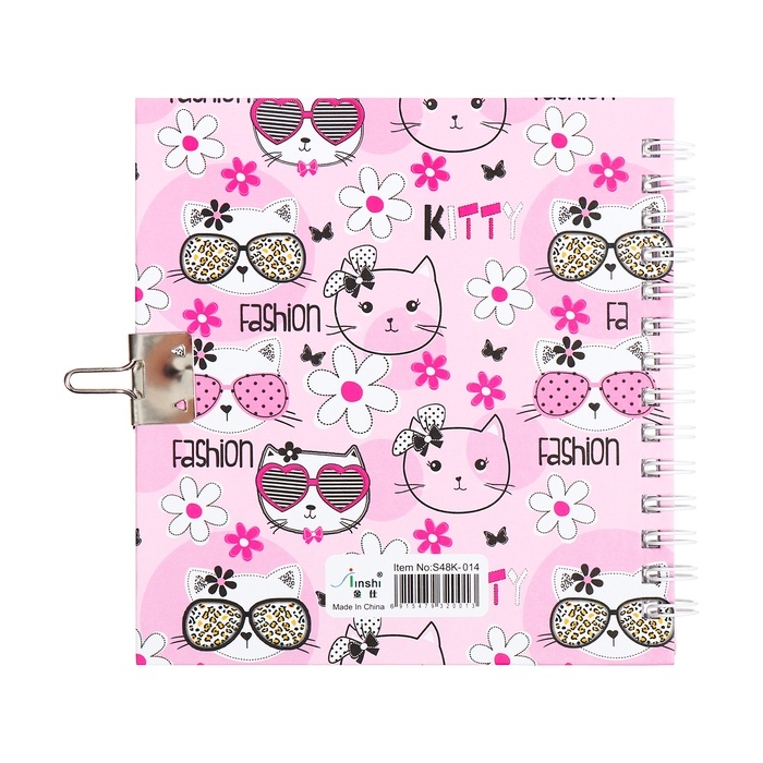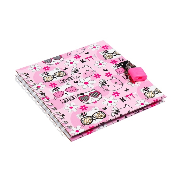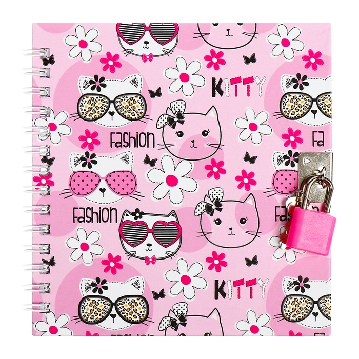 Записная книжка подарочная, 45 листов, линия, на замке, на гребне, Котики (13х13,5см)