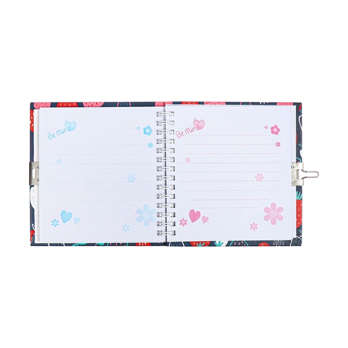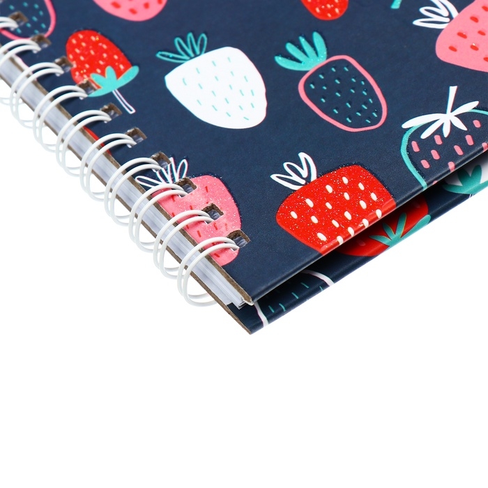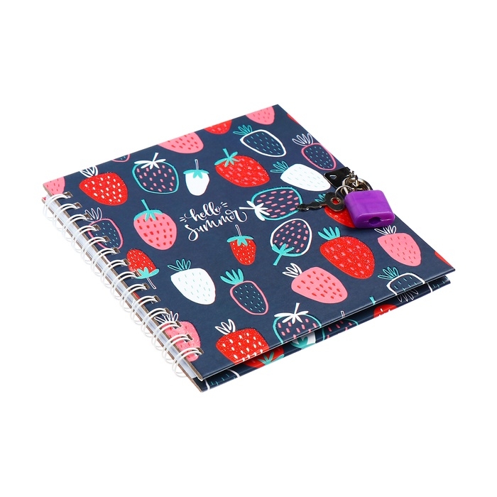 Записная книжка подарочная, 45 листов, линия, на замке, на гребне, Клубника (13х13,5см)