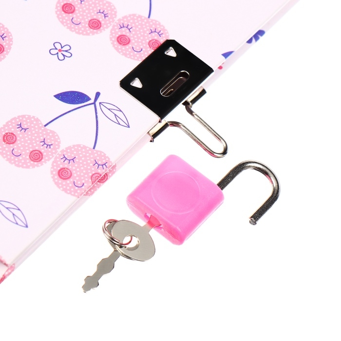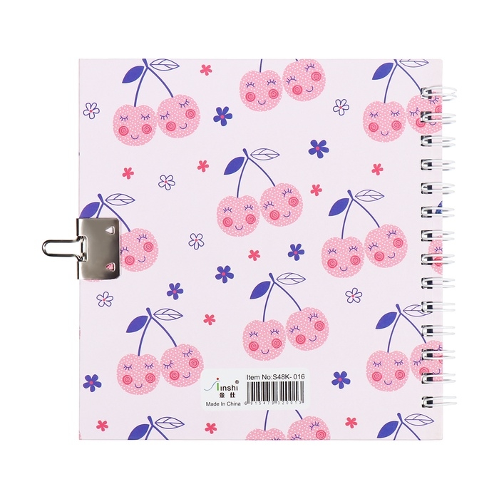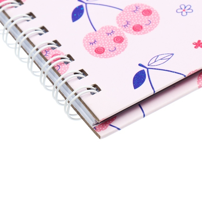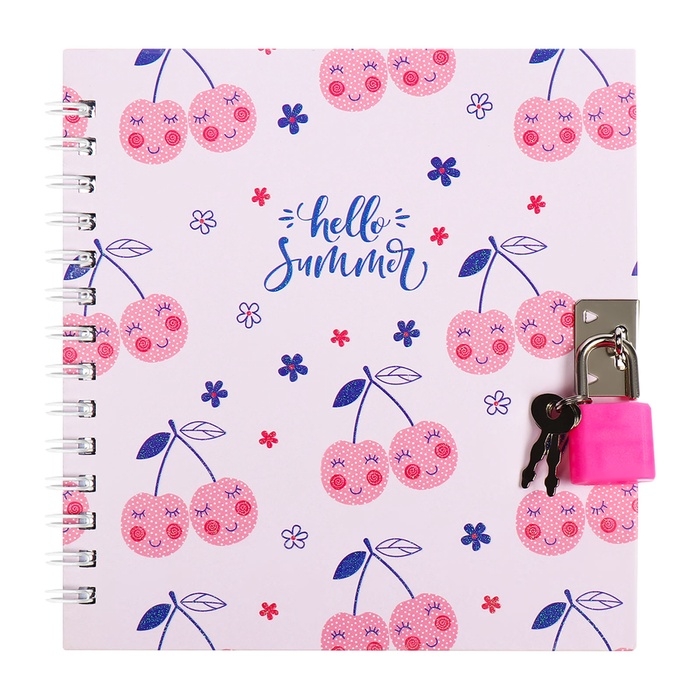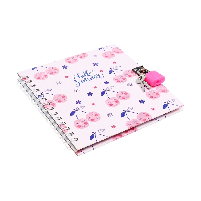 Записная книжка подарочная, 45 листов, линия, на замке, на гребне, Вишенки (13х13,5см)