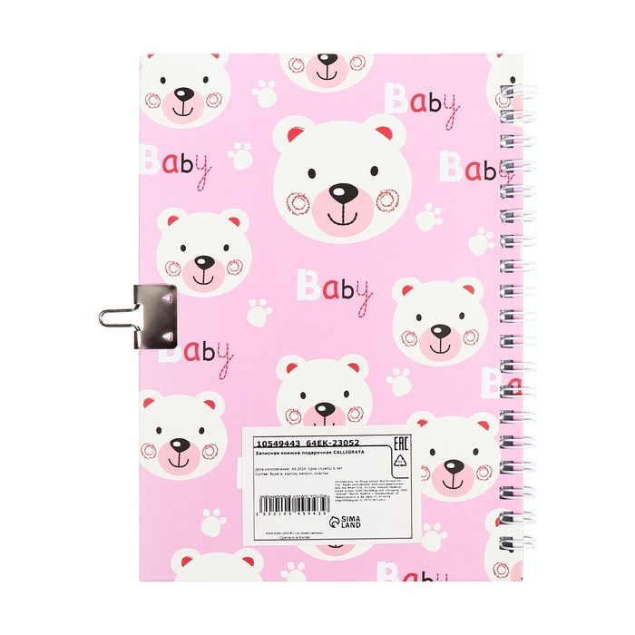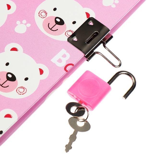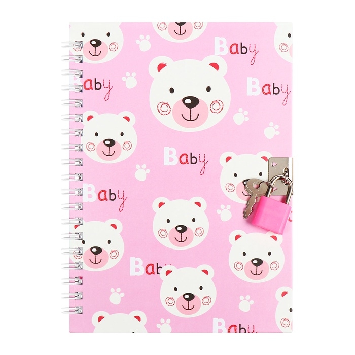 Записная книжка подарочная, 45 листов, линия, на замке, на гребне, Мишки (17,8х13см)