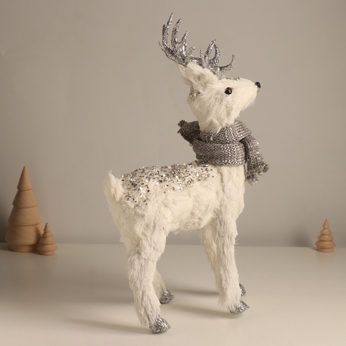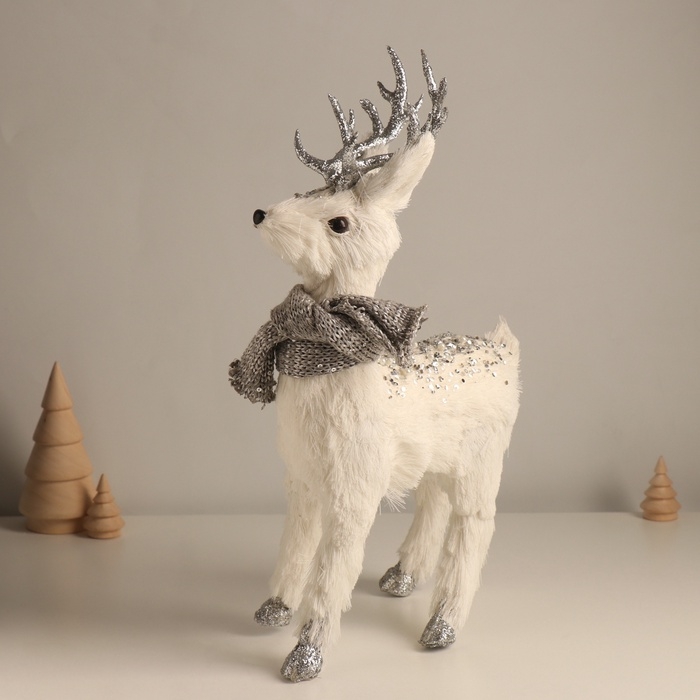 Декор "Белый олень с блёстками, в шарфике" 23х10х38 см