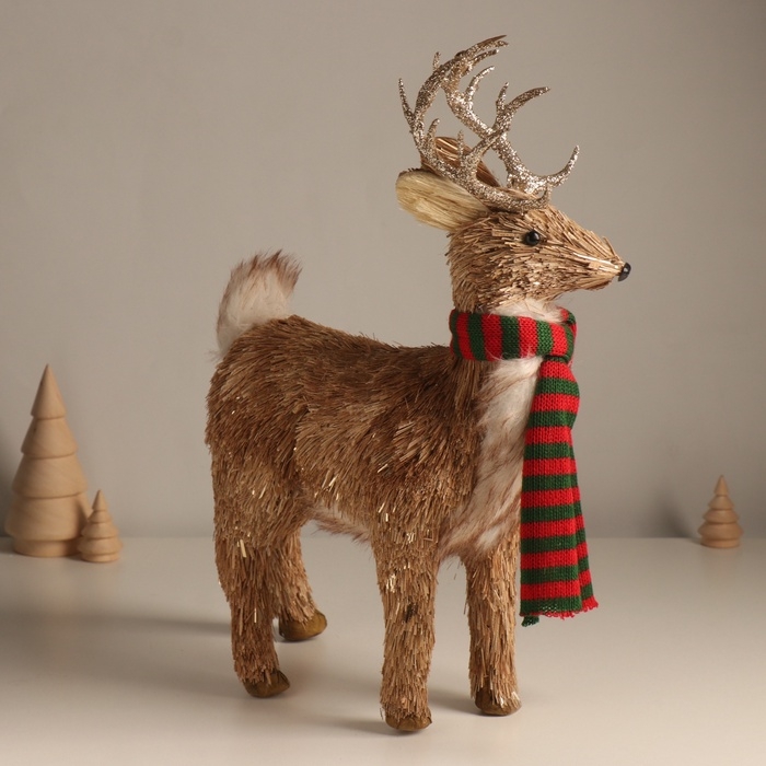 Декор "Олень с серебристыми рогами, в шарфике" 18х10х38 см