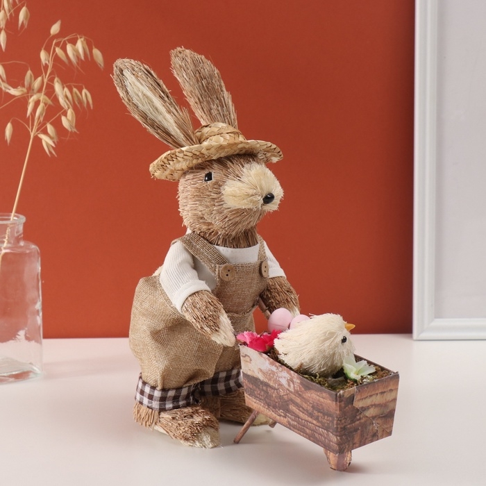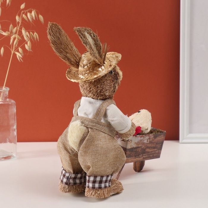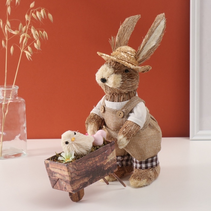 Декор "Зайчик с курочкой в тележке" 10х30х27 см