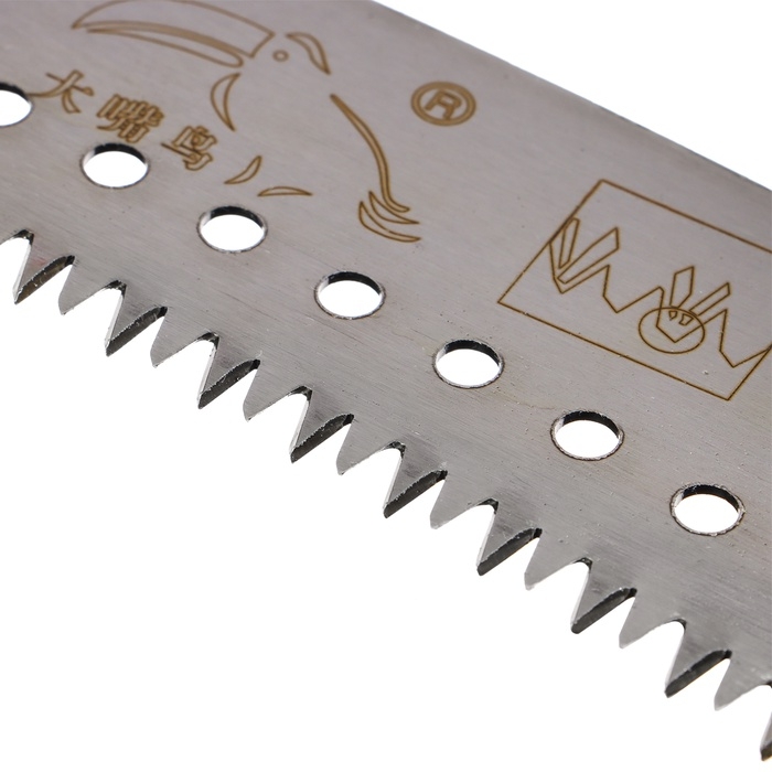 - Ножовка имеет два крюка на концах лезвия: верхний удерживает пилу от соскальзывания, а нижний обеспечивает чистый и точный срез.