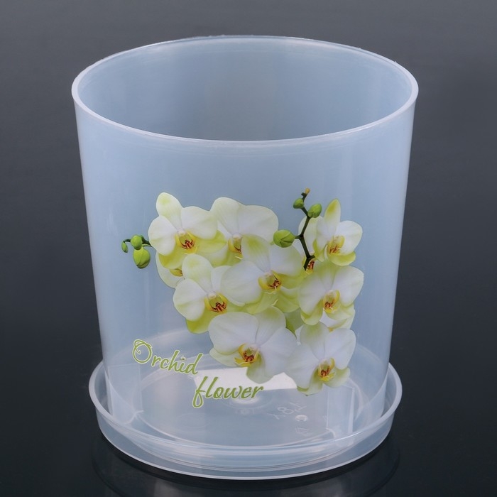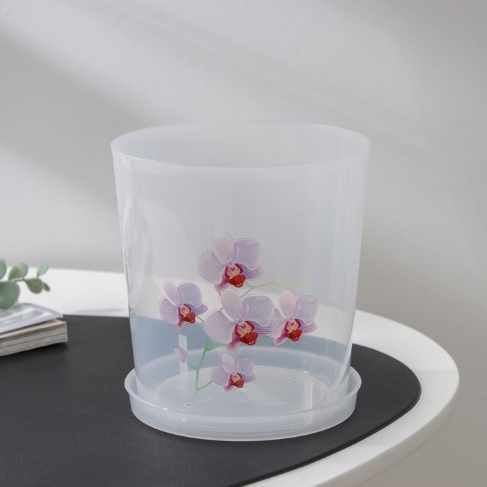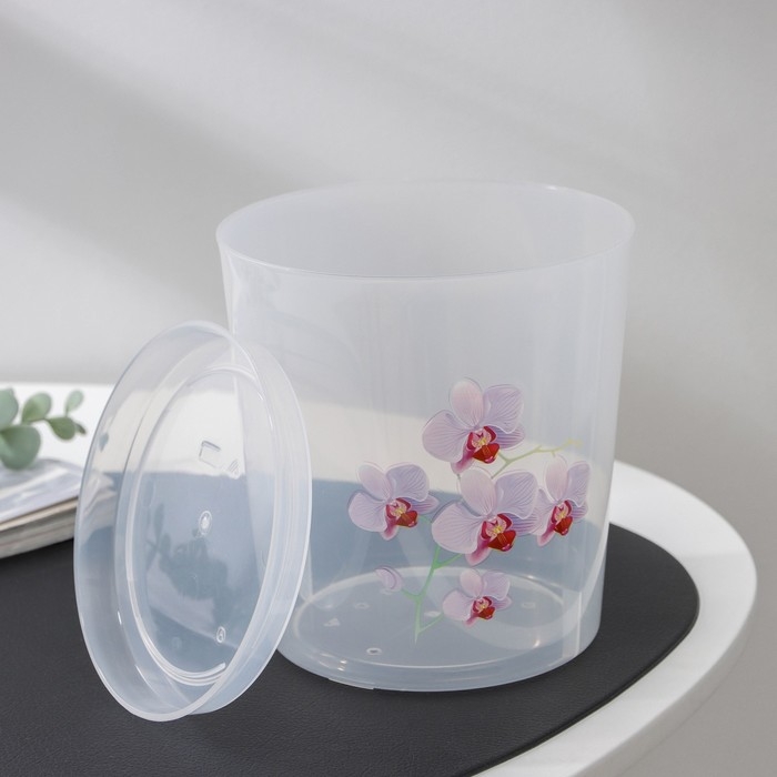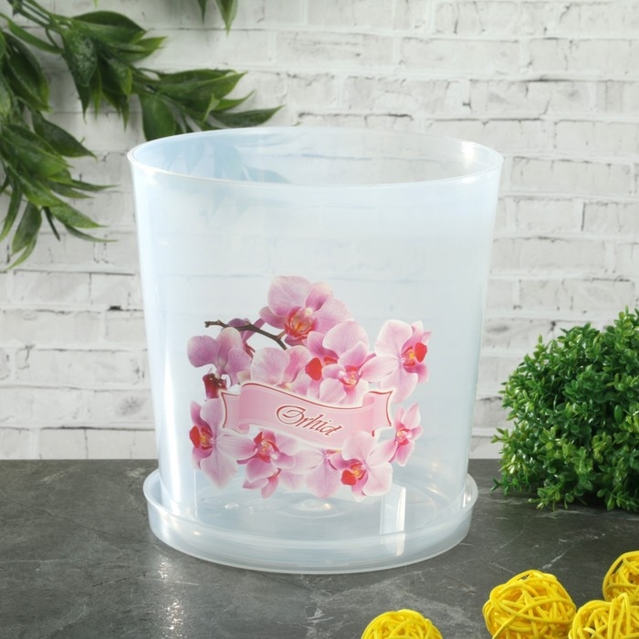 Горшок для орхидей с поддоном, 1,8 л, пластиковый, цвет МИКС